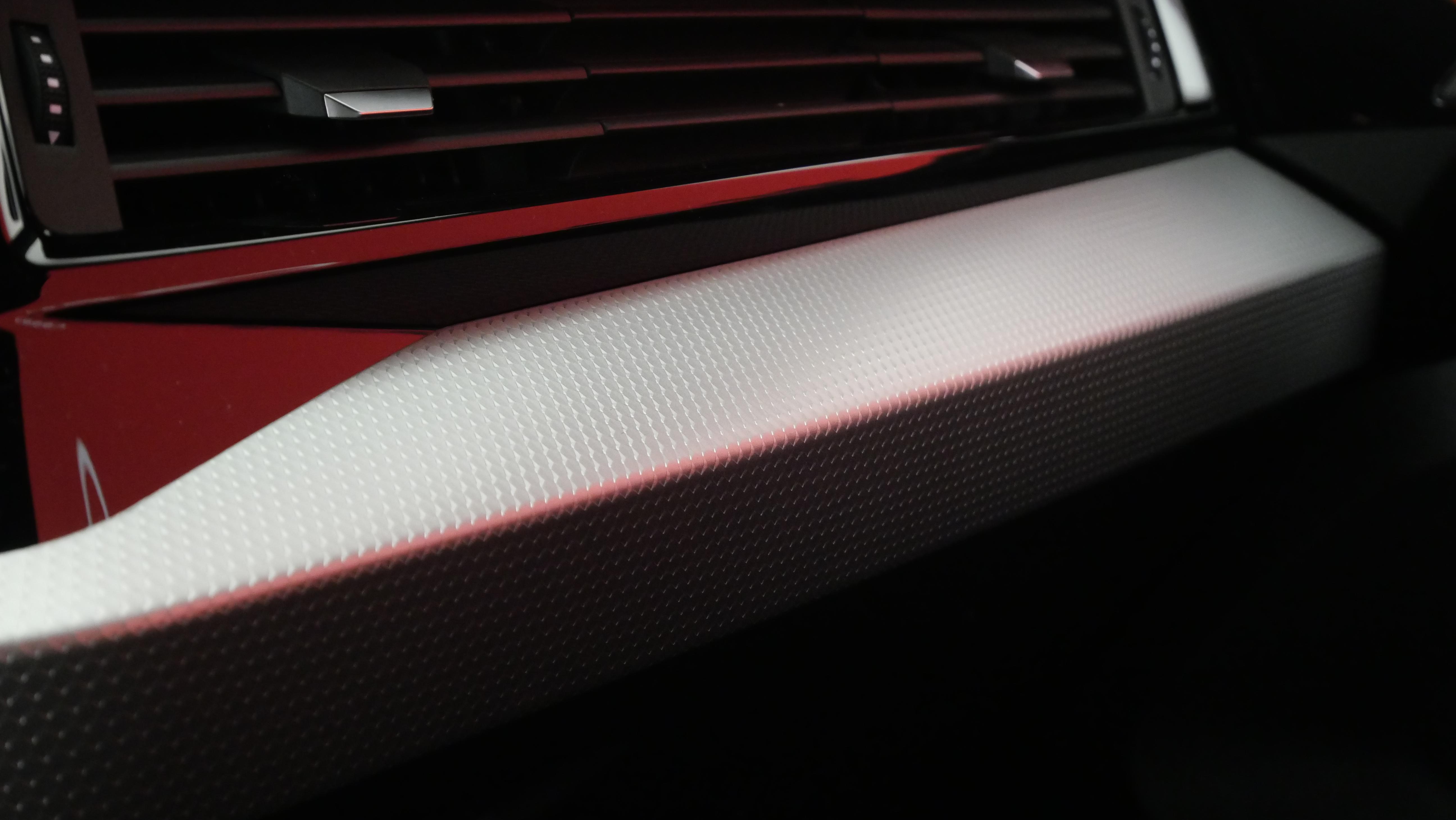 • Applications décoratives étendues en laque Quartz Gris structuré dans l'insert du diffuseur d'air et de la console centrale ainsi que dans la poignée de la commande intérieure de verrouillage des portières