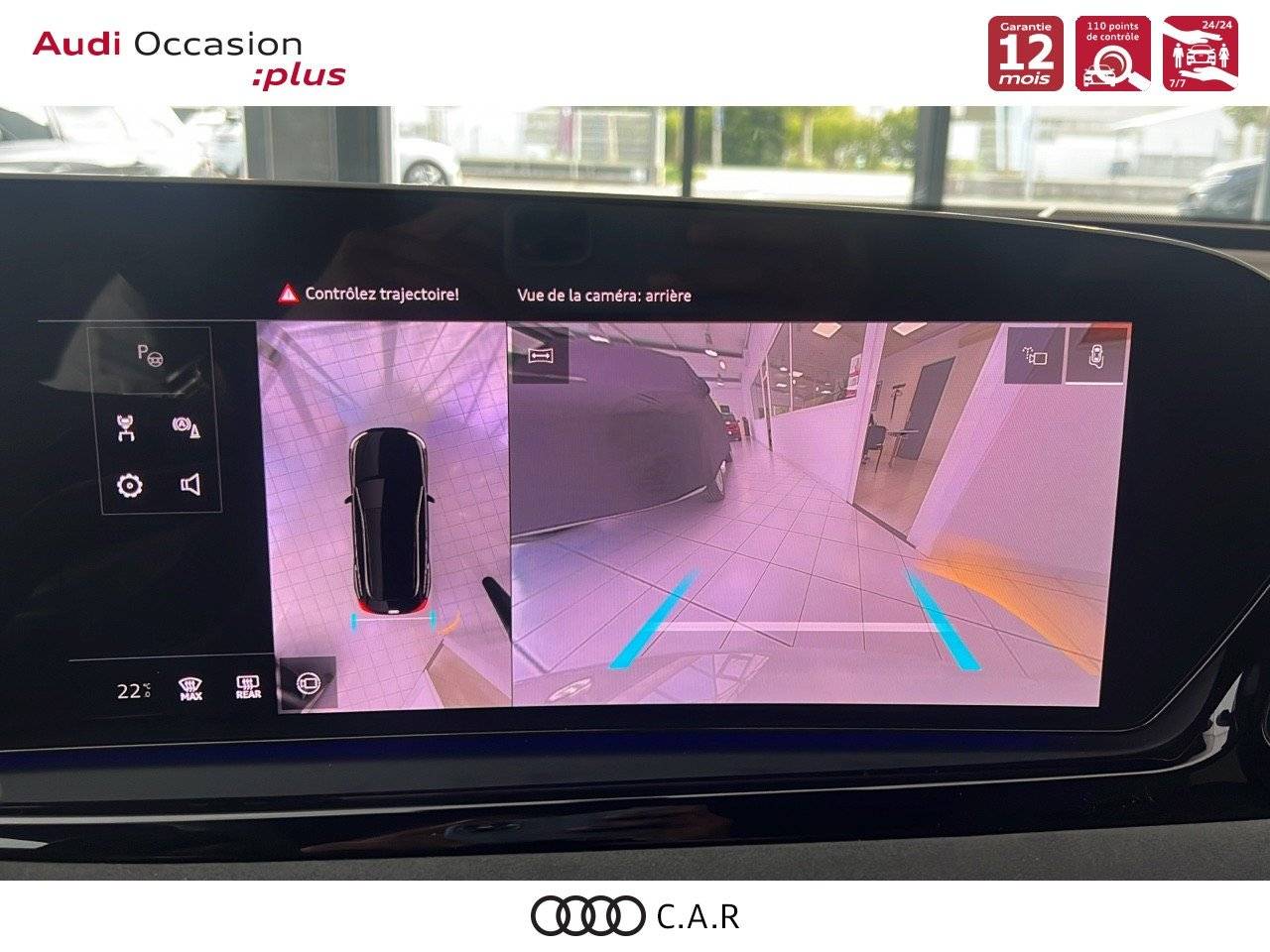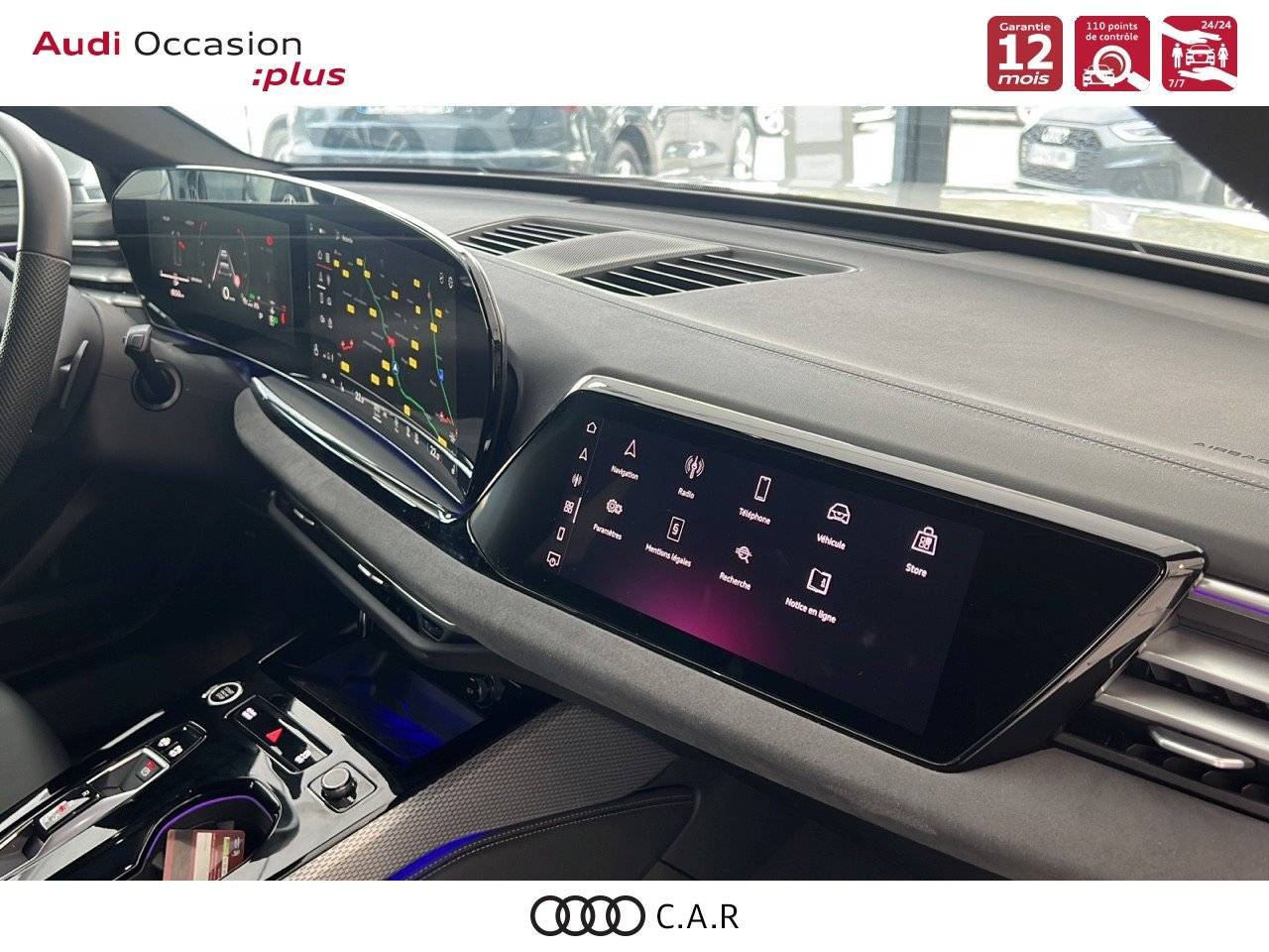 • Pack Tech - Caméra de recul - Régulateur de vitesse adaptatif - Park assist plus - Système d'aide au stationnement plus - Projecteurs à LED plus - Assistant feux de route - Bloc de feux AR à LED pro - Climatisation automatique 3 zones - Rétroviseur intérieur à réglage jour/nuit automatique - Rétroviseurs ext. réglables - Projection de logo sur le sol depuis les rétroviseurs extérieurs - Audi sound system - Audi Application Store et smartphone interface