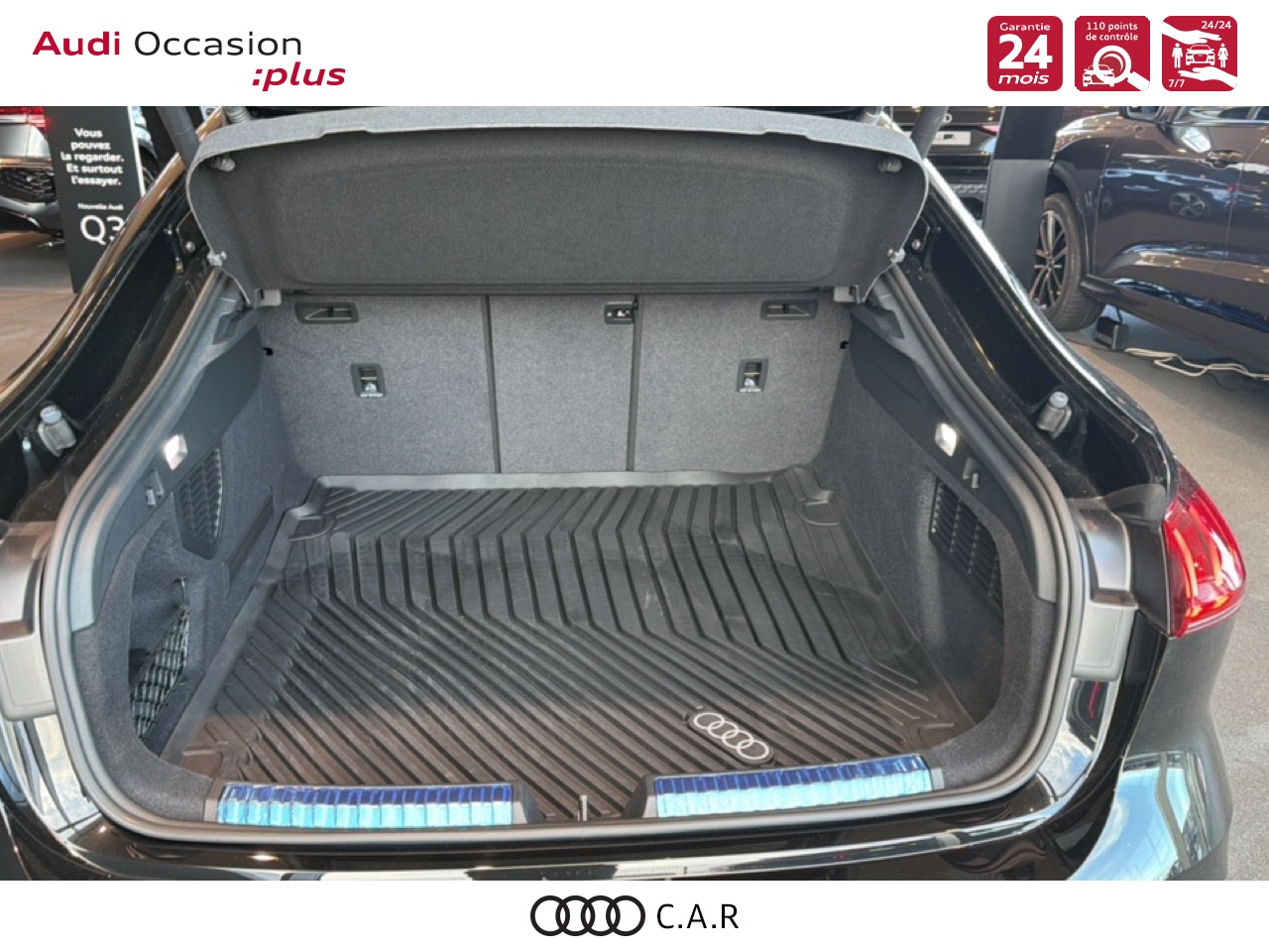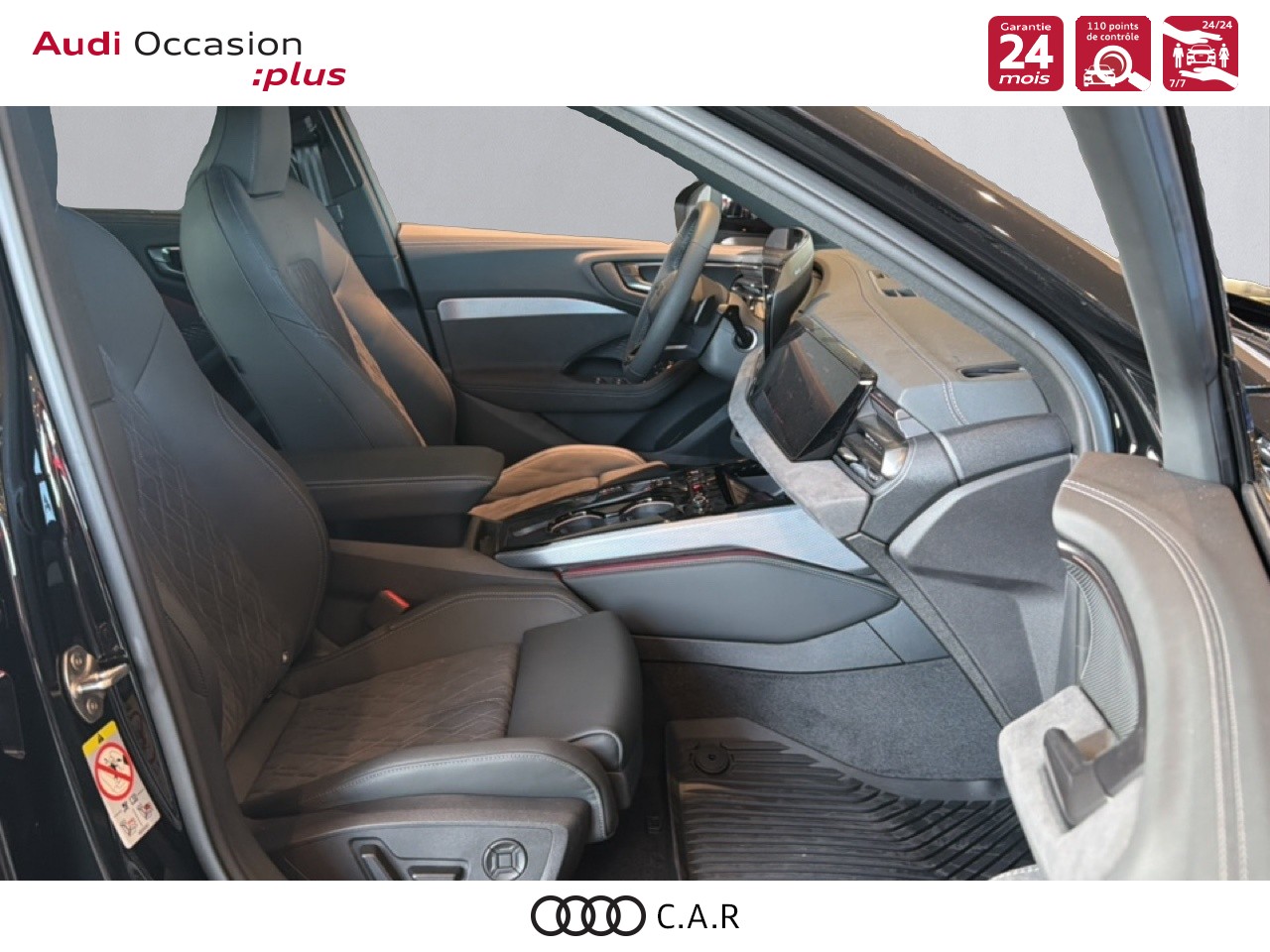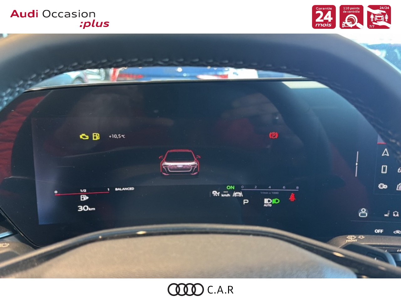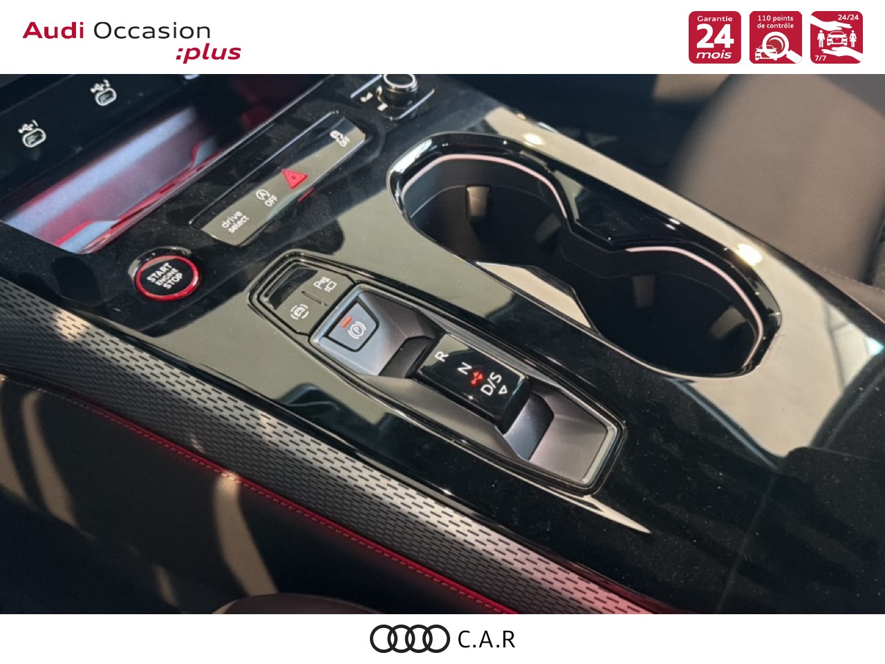 • Pack Tech Caméra de recul. Régulateur de vitesse adaptatif. Park assist plus.Système d'aide au stationnement plus.Alerte de sortie de voie.Projecteurs à LED plus. Assistant feux de route.Climatisation automatique 3 zones. Rétroviseur intérieur à réglage jour/nuit automatique. Rétroviseurs ext. réglables dégivrants et rabattables électriquement à réglage jour/nuit automatique des 2 côtés.Projection de logo sur le sol depuis les rétroviseurs extérieurs. Audi sound system.Audi Application Store