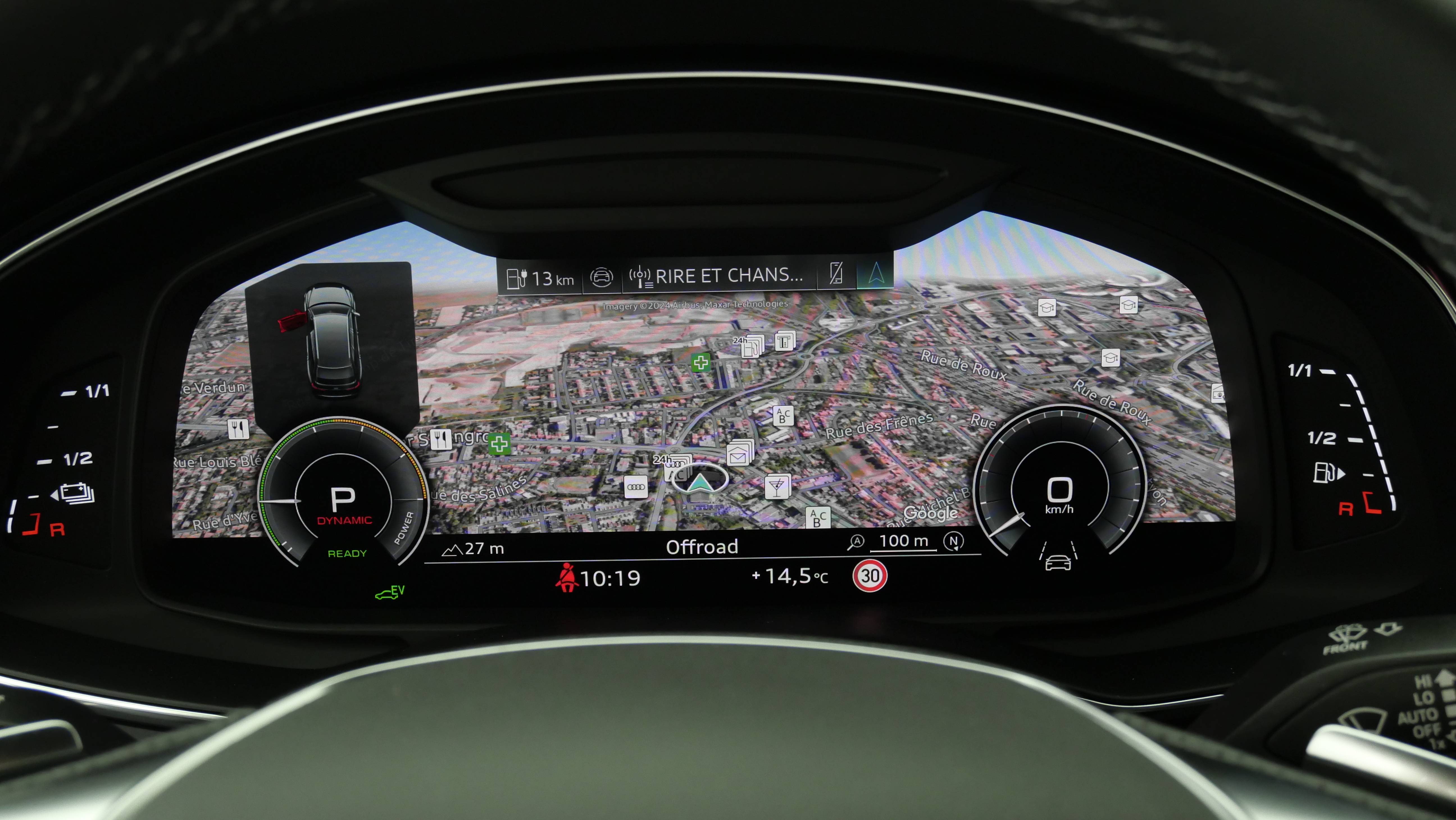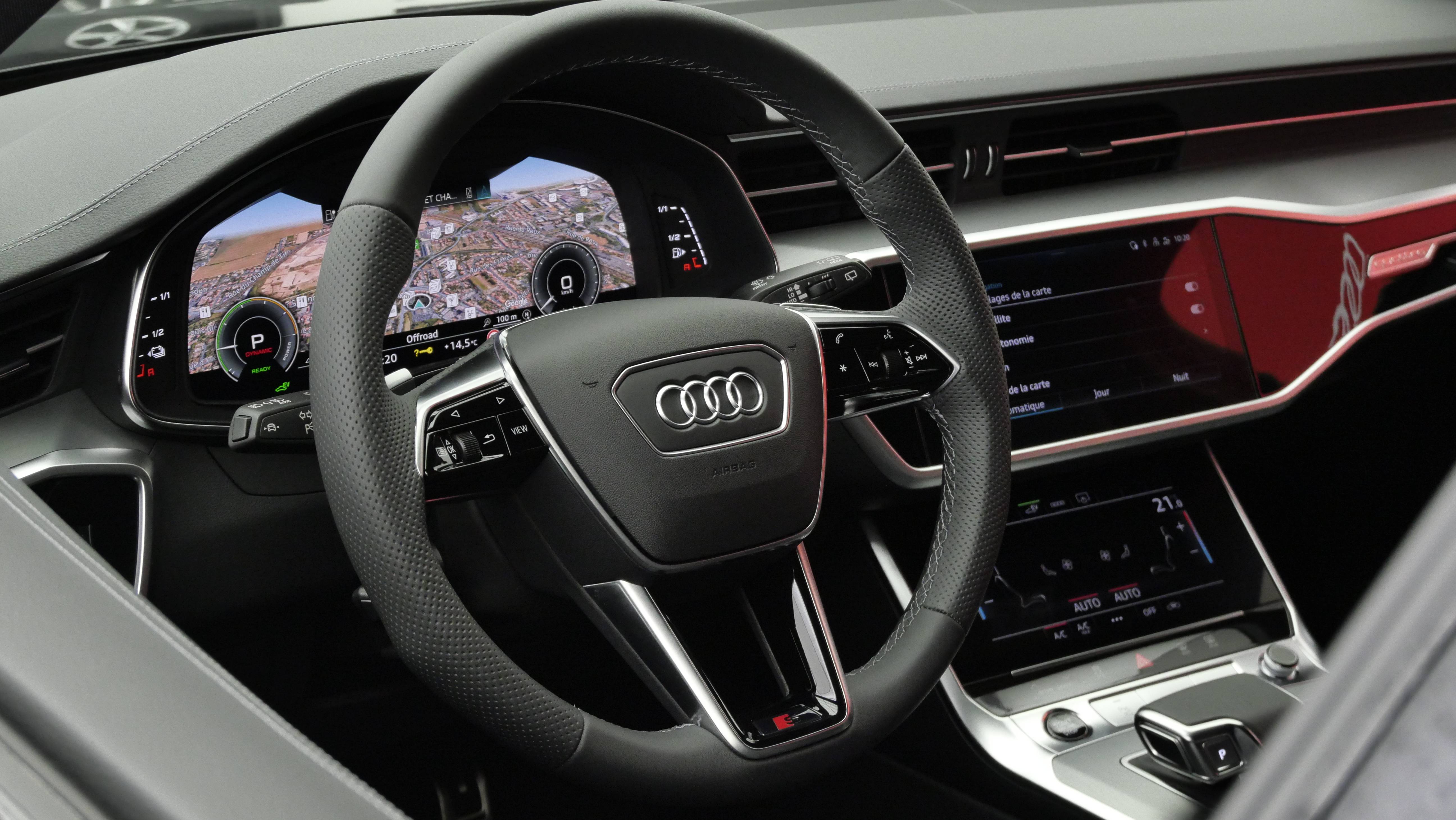 • Navigation MMI plus avec MMI touch response Afichage sur l'écran couleur 10,1" avec virtual Cockpit 12,3", Affichage suppl. de la carte de navigation de direction sur le système d'information du conducteur, Mise à jour des cartes par téléchargement des données, Affichage de cartes 3D comportant de nombreuses curiosités et modelés urbains, Assistant de guidage personnel et d'efficacité, nformations routières en ligne, Recherche MMI intelligente avec saisie assistée, MMI touch response, Commande vocale dans un langage naturel