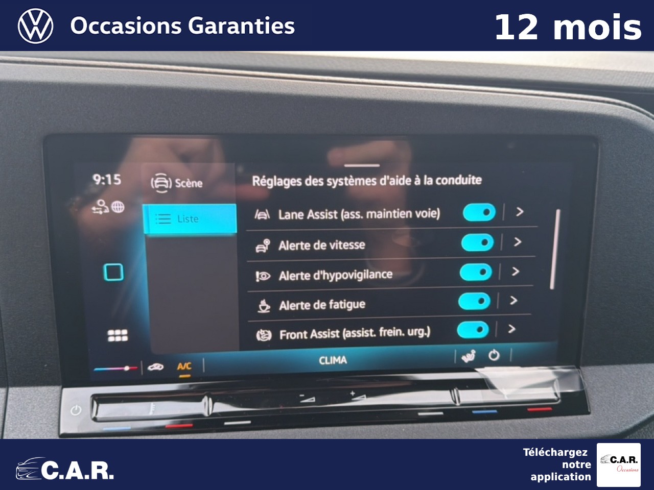 • Pack Technique Airbag Latéraux/Rideaux pour conducteur et passager, Front Assist, Line Assist, Caméra multifonction, Volant multifonction, Système de contrôle de l'état des pneus, Rétroviseur intérieur de sécurité à réglage jour/nuit