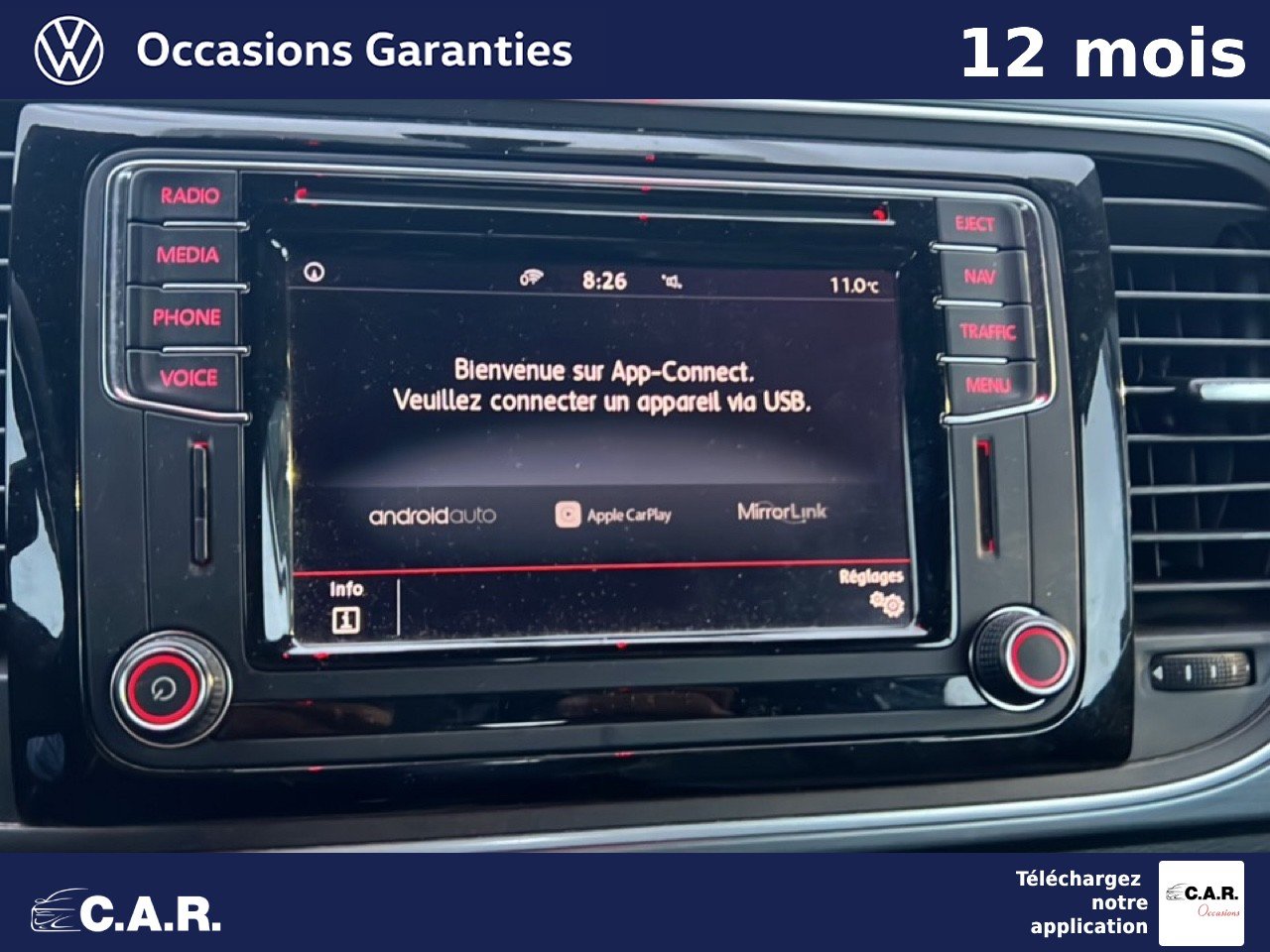 • Car-Net "App-Connect" affichage et contrôle via l'écran tactile de la voiture, du contenu, des fonctions et des applications compatibles présents sur le Smartphone