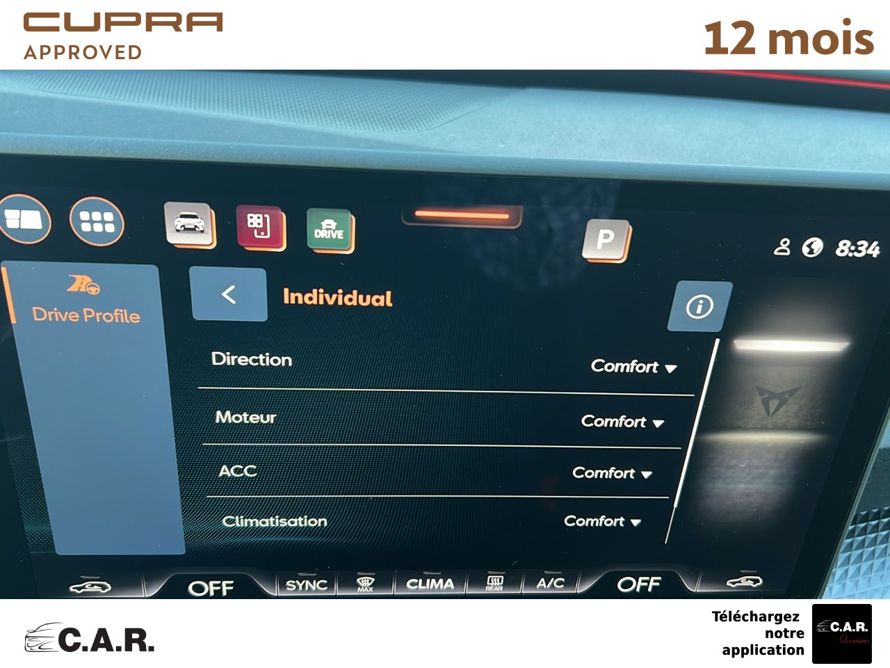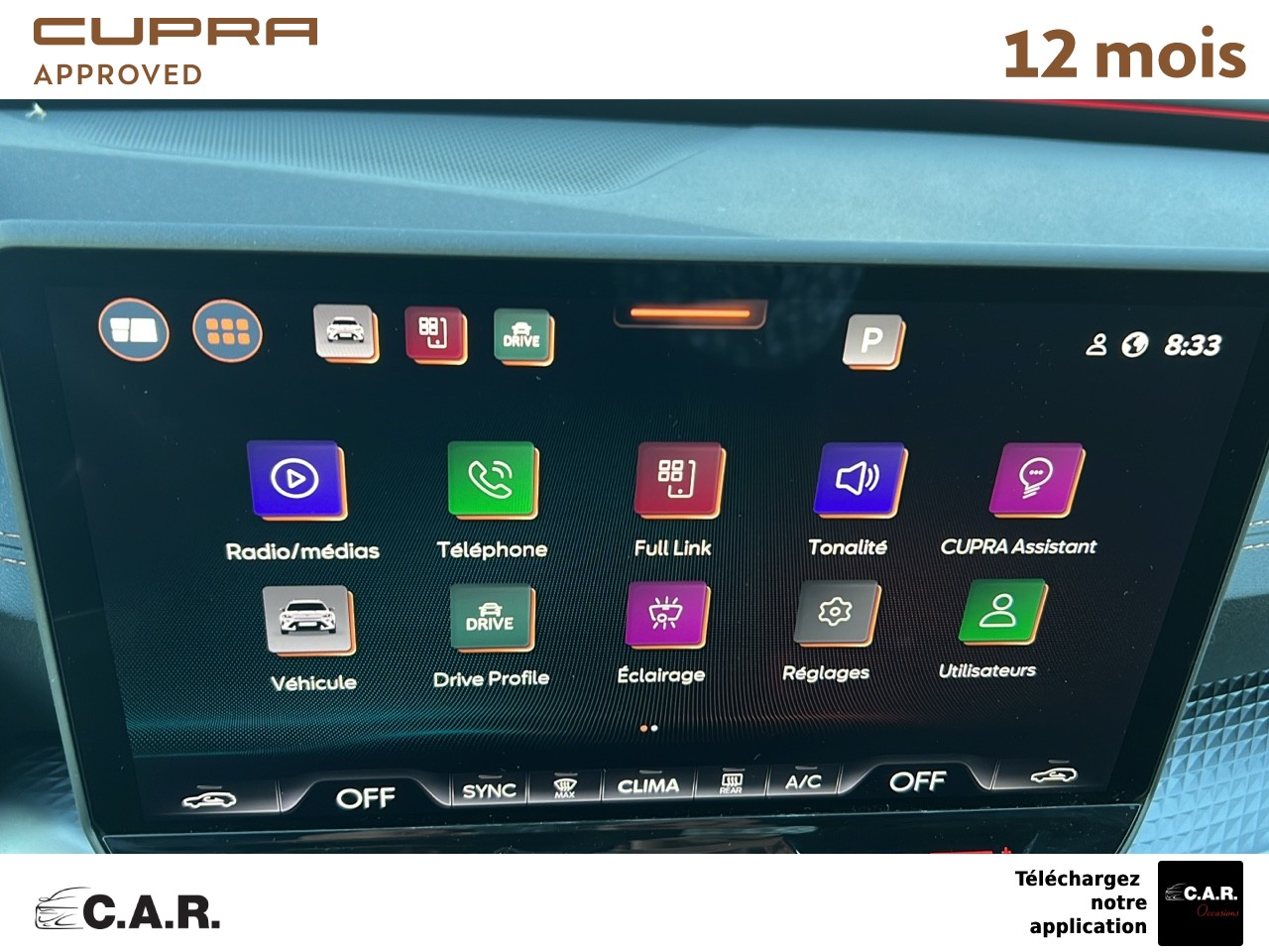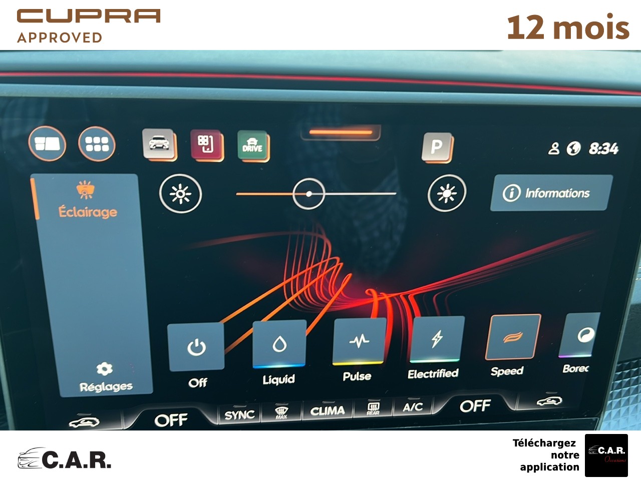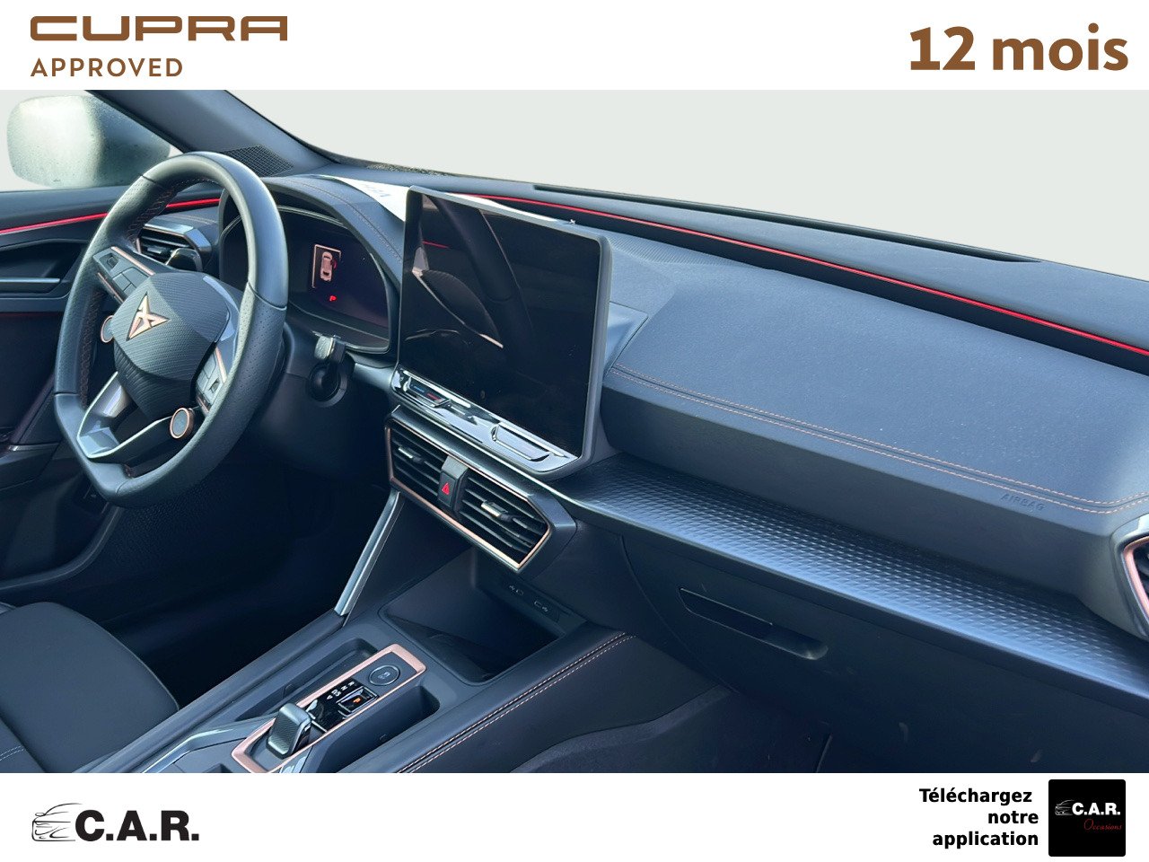 • Bandeau AR ''Infinite Light'' intégrant le logo CUPRA lumineux avec signature lumineuse Tri-LED et cérémonie de bienvenue