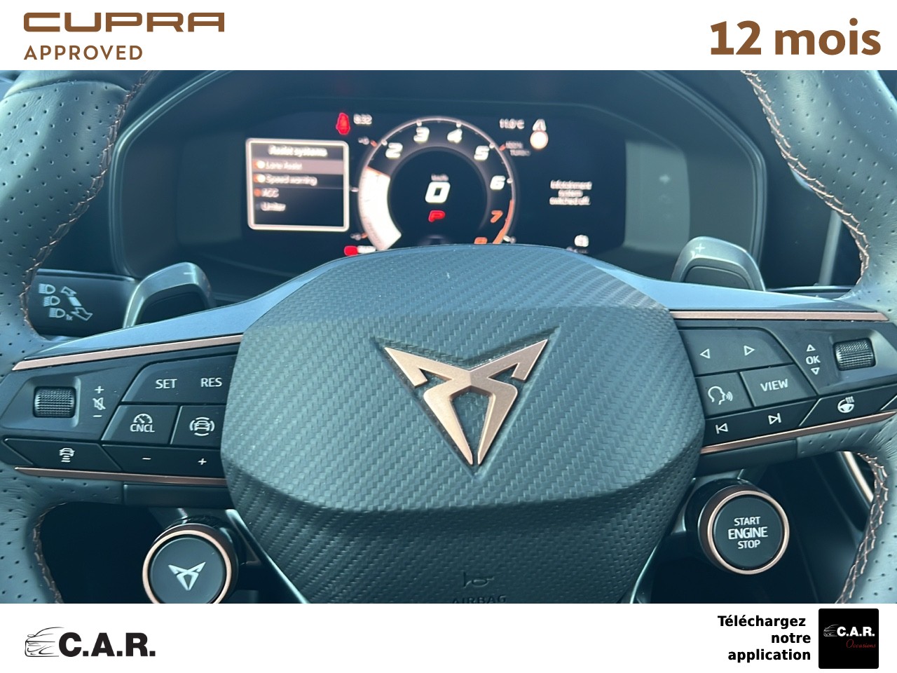 • Volant Supersports CUPRA en cuir avec boutons satellites, chauffant avec palettes de changement de rapport