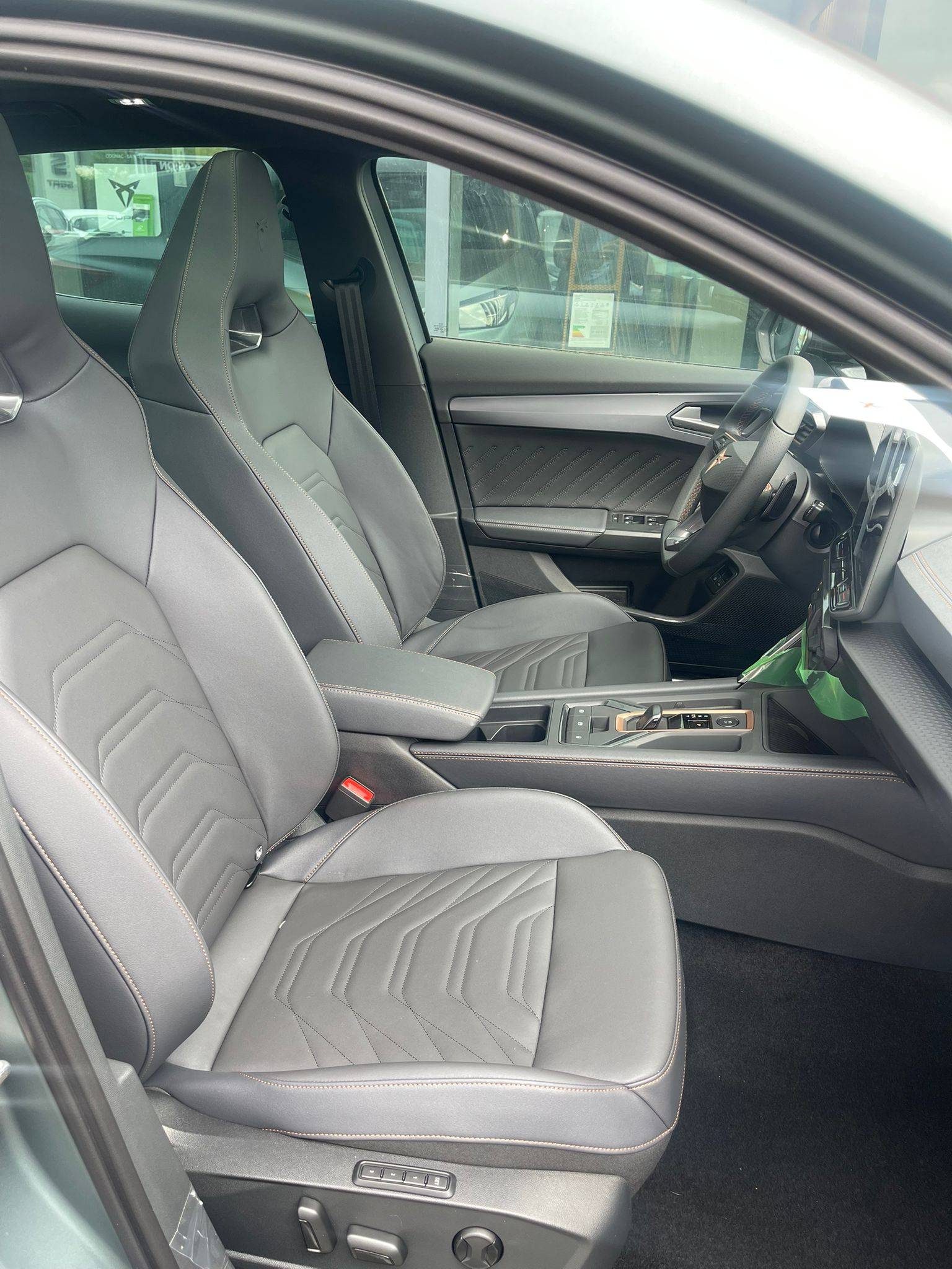 • Design intérieur Dynamic - Sièges baquets suédine Noir Asphalte avec poinçonnage Bleu Astral et surpiqûres cuivrées - Logos CUPRA estampés sur les appuie-têtes - Planche de bord noire surpiquée avec inserts Dark Alu - Contre-portes suédine noire avec poinçonnage Bleu Astral - Siège conducteur : chauffant avec réglage électrique à mémoire, y compris réglage lombaire - Siège passager : chauffant avec réglage manuel de la hauteur