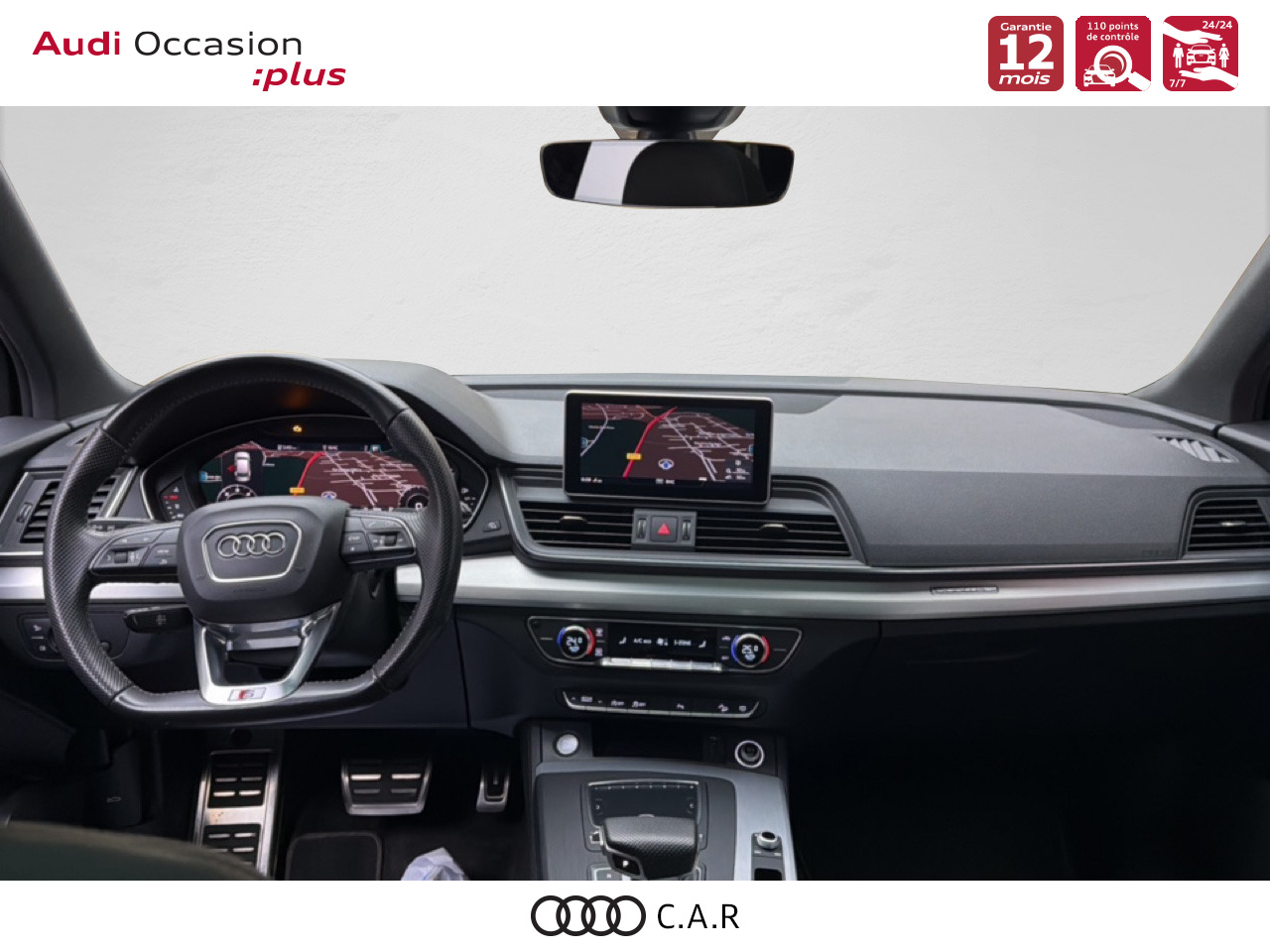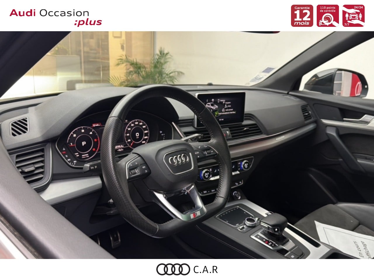 • Volant 3 branches multifonctions plus en cuir badgé S line avec méplat avec palettes de changement de vitesse