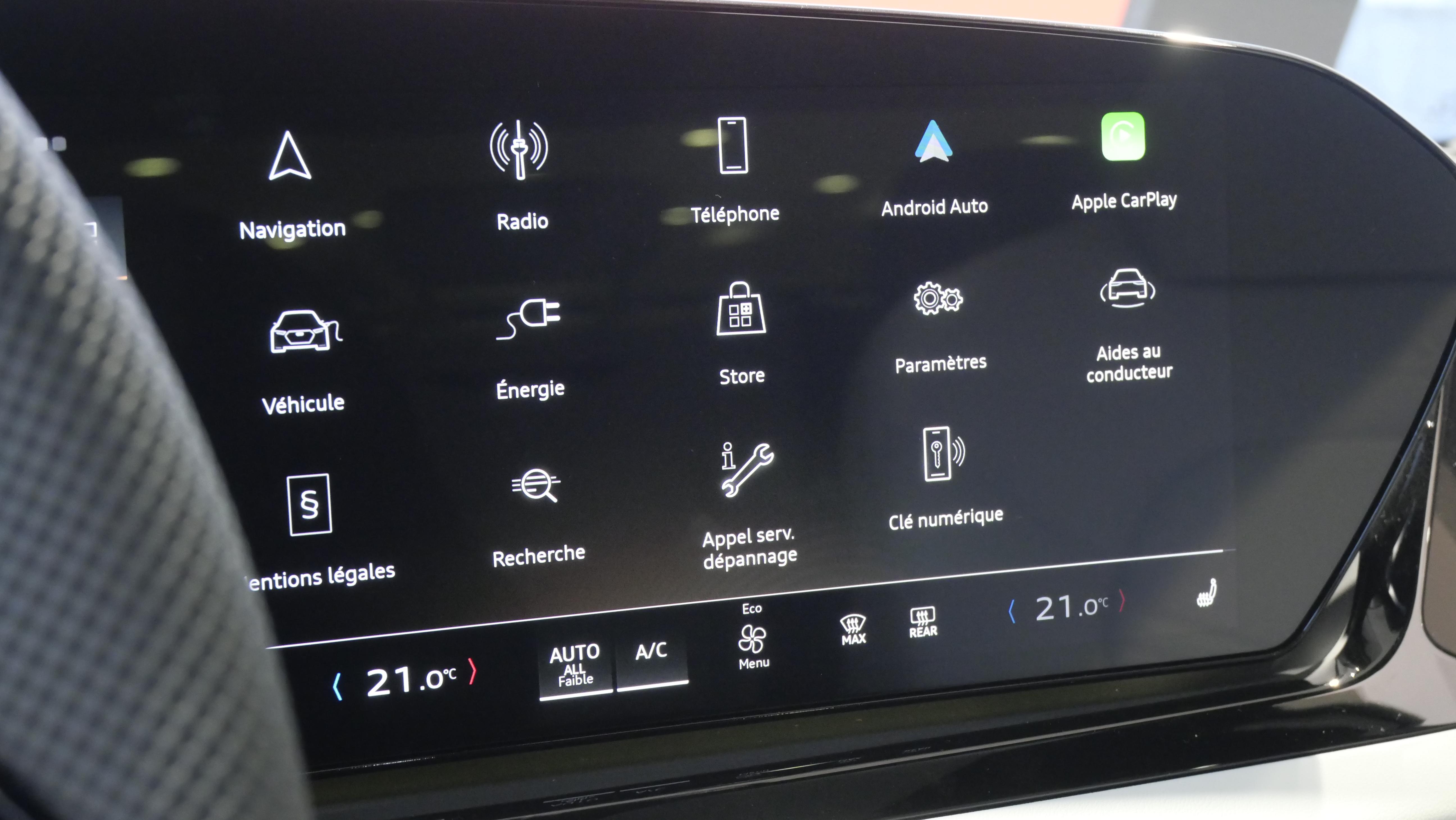 • MMI Navigation plus avec MMI touch Le système de navigation MMI plus avec MMI touch offre : - l'écran panoramique MMI avec technologie OLED, comprenant l'Audi virtual cockpit plus avec écran de 11,9 pouces ainsi que l'écran MMI touch de14,5" - système de navigation avec affichage des cartes et guidage routier sur l'écran couleur haute résolution de 14,5" - mise à jour des cartes en ligne - Affichage de cartes en 3D montrant de nombreux sites d'intérêt - informations routières en ligne - MMI search - MMI touch