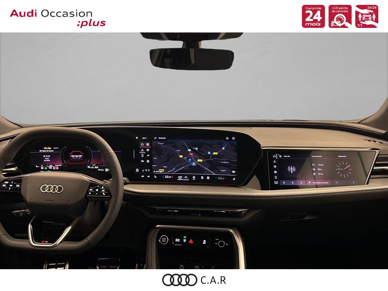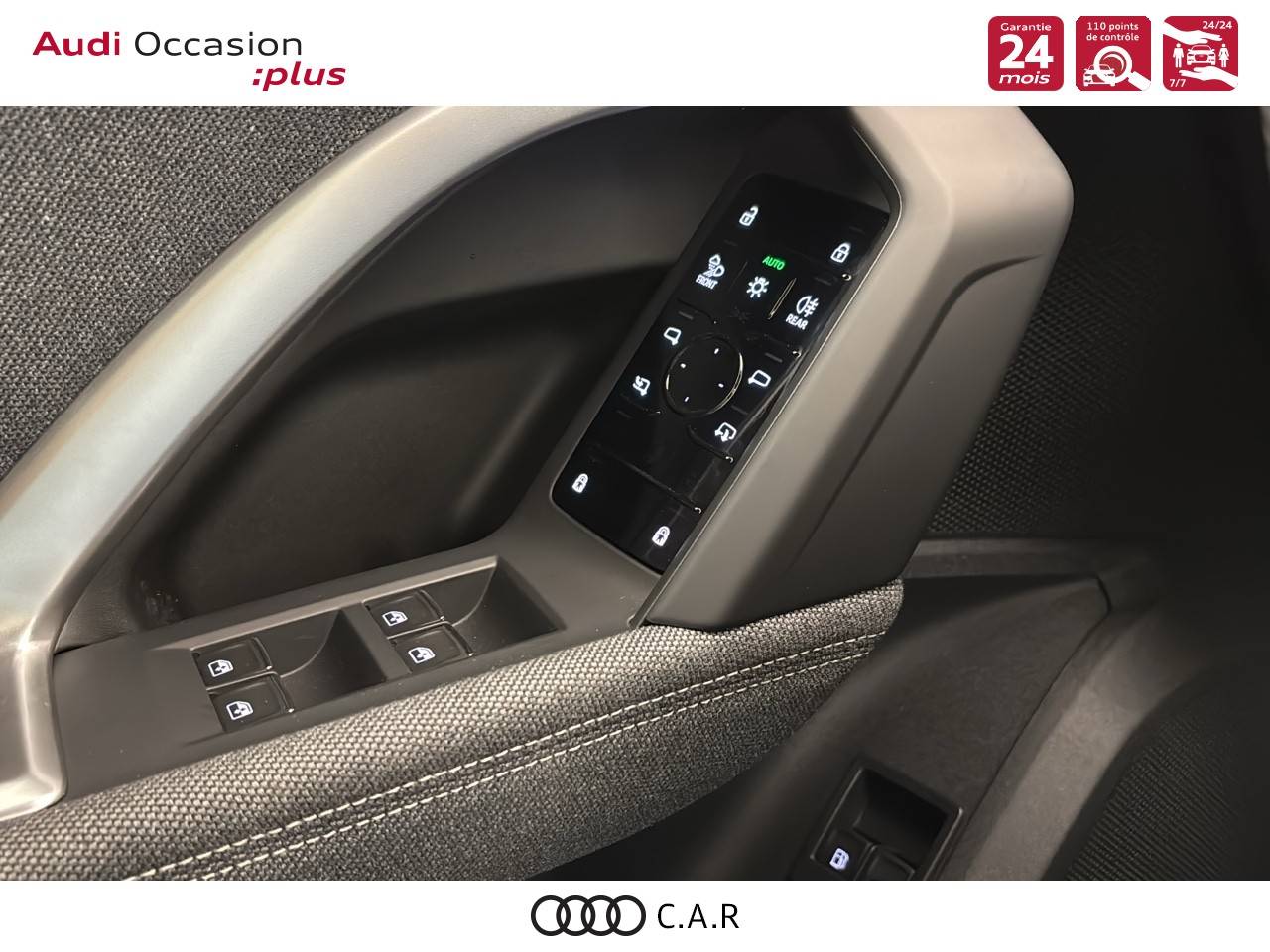 • Pack Tech -Clim. auto. 3 zones, -Rétroviseur int. à réglage jour/nuit auto., -Rétroviseurs ext. réglables, dégivrants et rabattables électriquement., -Projection de logo sur le sol depuis les rétroviseurs ext, -Lave-projecteurs, -Audi Application Store et smartphone interface, -Audi sound syst., -Projecteurs à LED plus, -Assistant feux de route, -Bloc de feux AR à LED pro, -Syst. d'aide au stationnement plus, -Park assist plus, -Caméra de recul, -Régulateur de vitesse adapt.