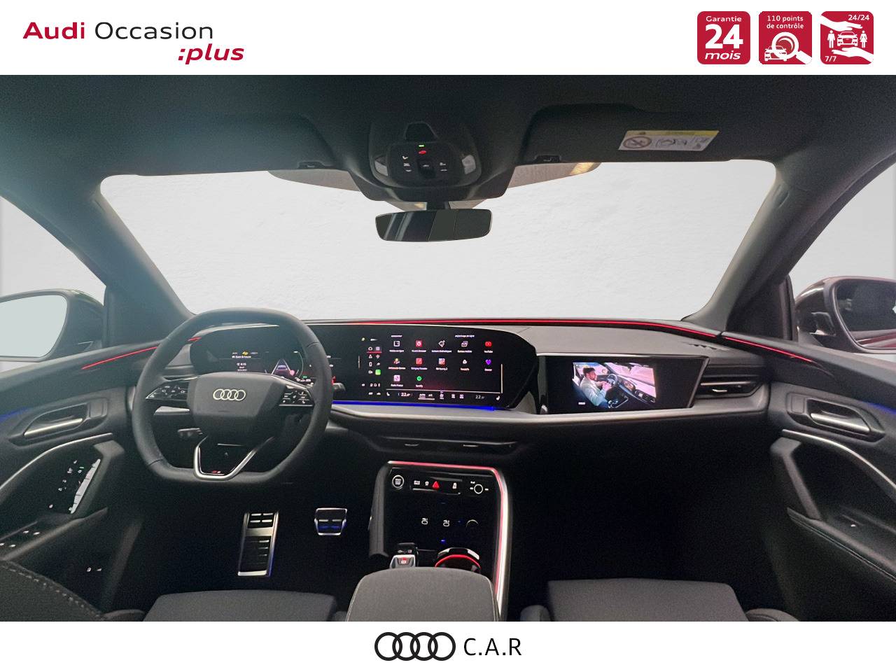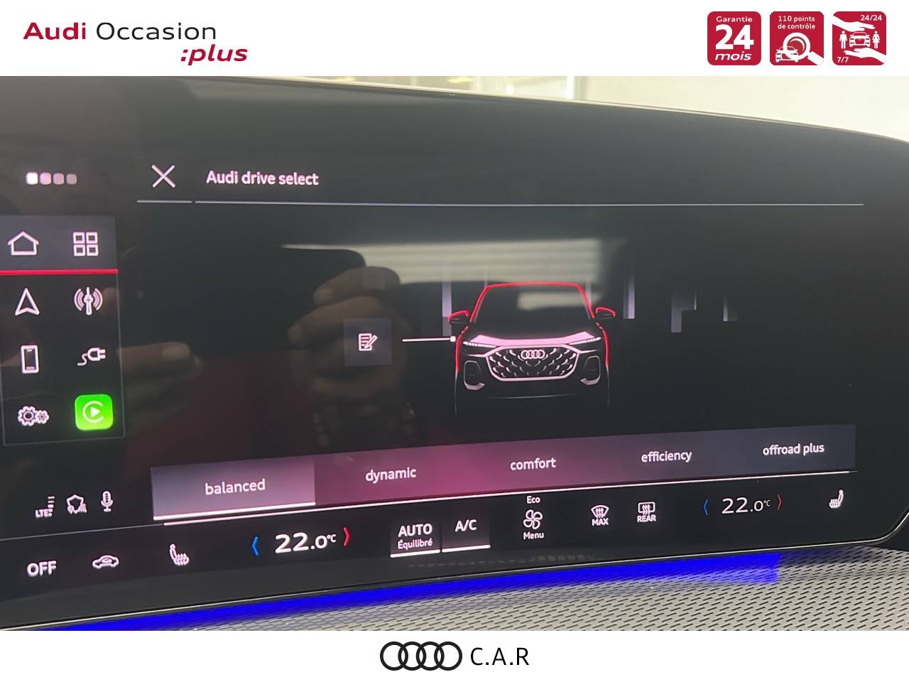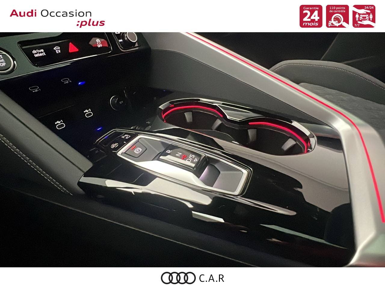 • Pack Tech -Clim. auto. 3 zones, -Rétroviseur int. à réglage jour/nuit auto., -Rétroviseurs ext. réglables, dégivrants et rabattables électriquement., -Projection de logo sur le sol depuis les rétroviseurs ext, -Lave-projecteurs, -Audi Application Store et smartphone interface, -Audi sound syst., -Projecteurs à LED plus, -Assistant feux de route, -Bloc de feux AR à LED pro, -Syst. d'aide au stationnement plus, -Park assist plus, -Caméra de recul, -Régulateur de vitesse adapt.