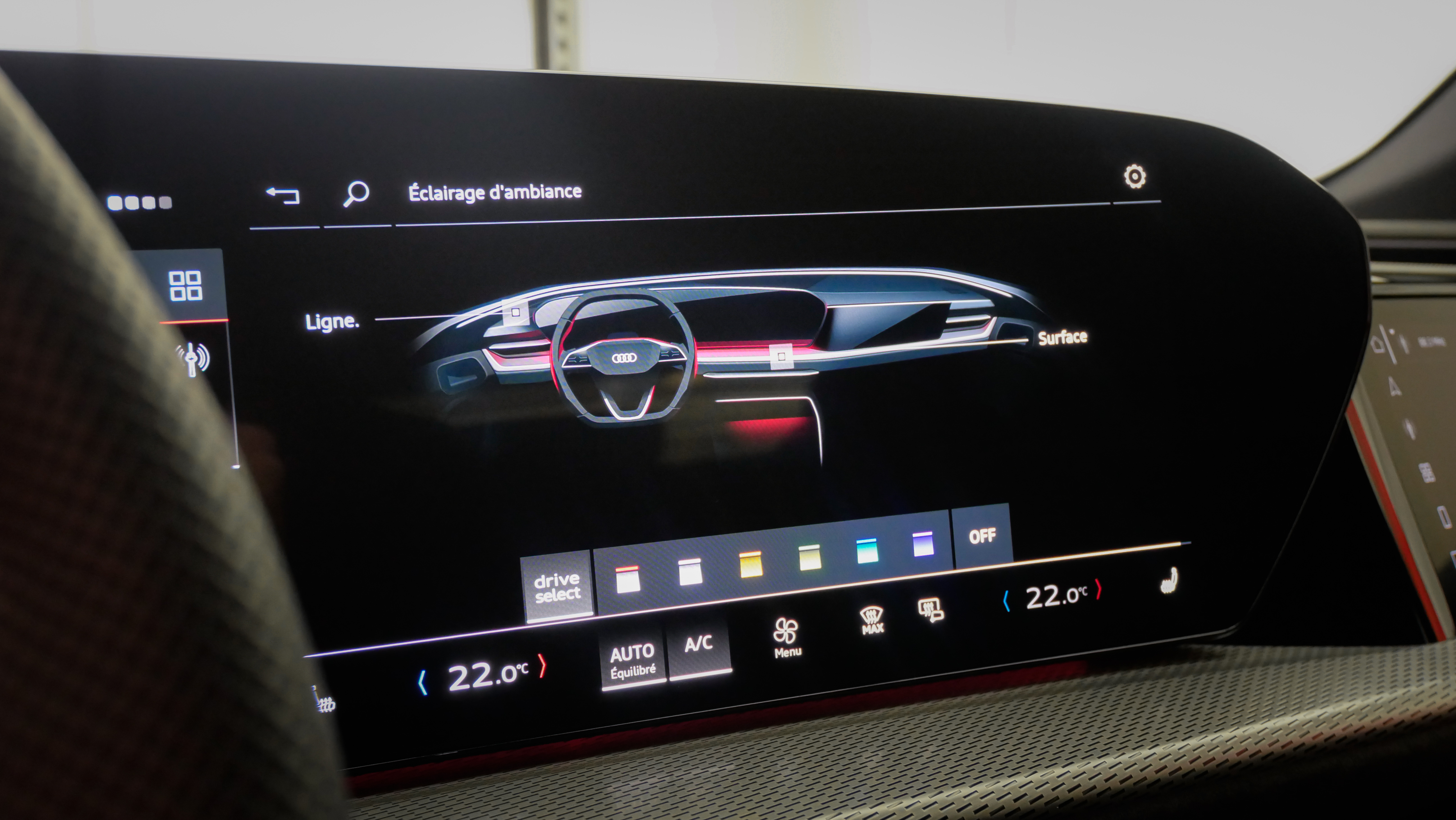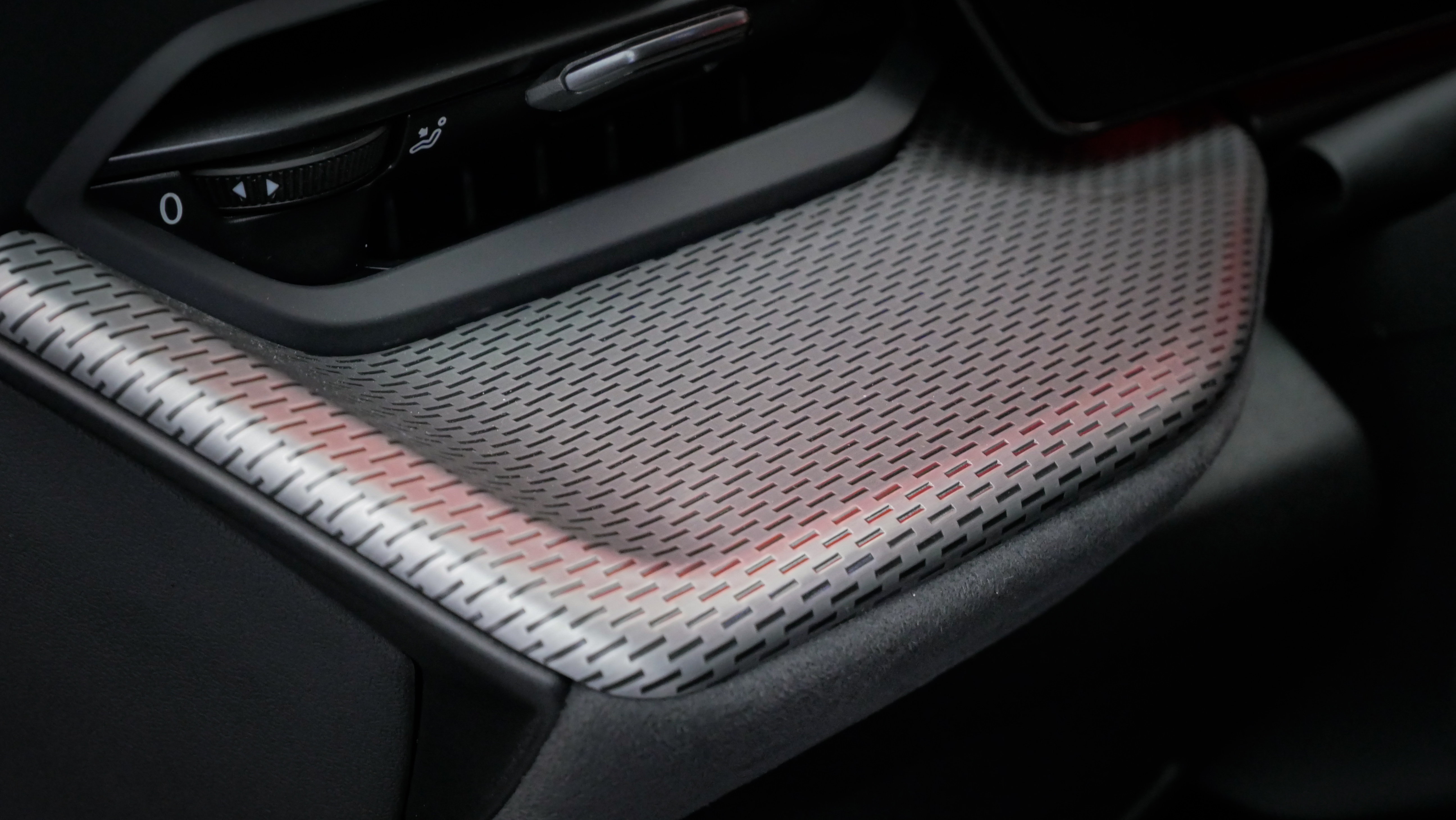 • Pack intérieur S line tissu. Avec Sièges Sport. Appuis lombaires.Sièges AV chauffants. Sièges AV à réglages électriques. Eclairage d'ambiance Plus. Inserts décoratifs en aluminium mat brossé avec gaufrage linéaire. Application intérieures style aluminium.