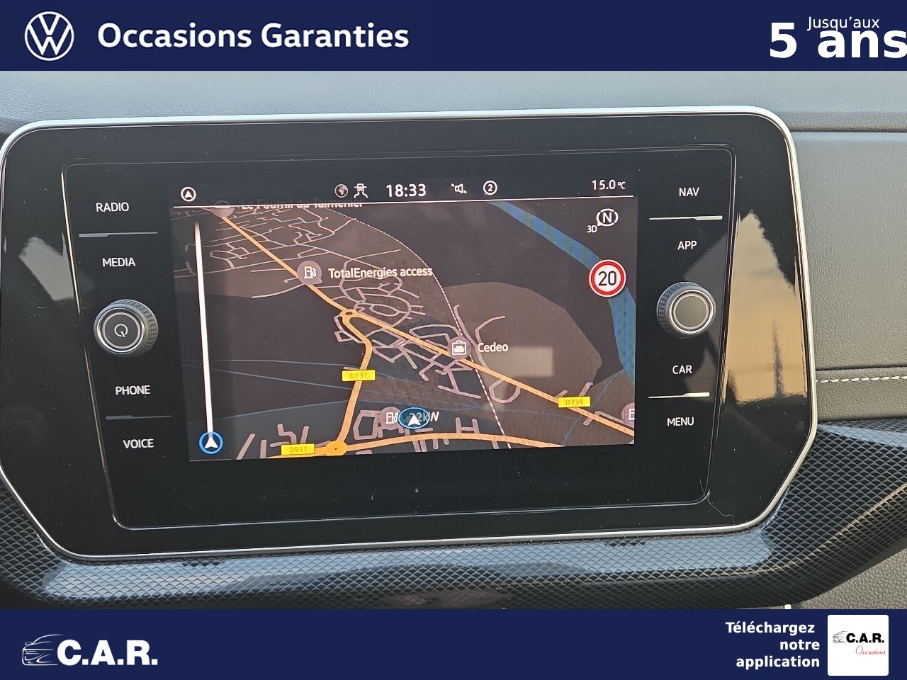 • Radionavigation 6 HP AV/AR (4x20W) avec: Système Navigation & Infotainment "Discover Media" avec Services de streaming et radio via Internet via carte eSIM intégrée Écran couleur tactile 8" haute résolution (800x480) Double tuner FM Affichage de la plage de lecture, du logo de la station à l'écoute Lecture des formats audio MP3 Port USB-C compatible Apple Affichage de la carte en 2D Affichage des logos des Points d'intéret, des limitations de vitesse, des zones de danger, etc. Interface Bluetooth avec fonction Audio Streaming A2DP Préparation pour "VW Connect" et "VW Connect Plus"