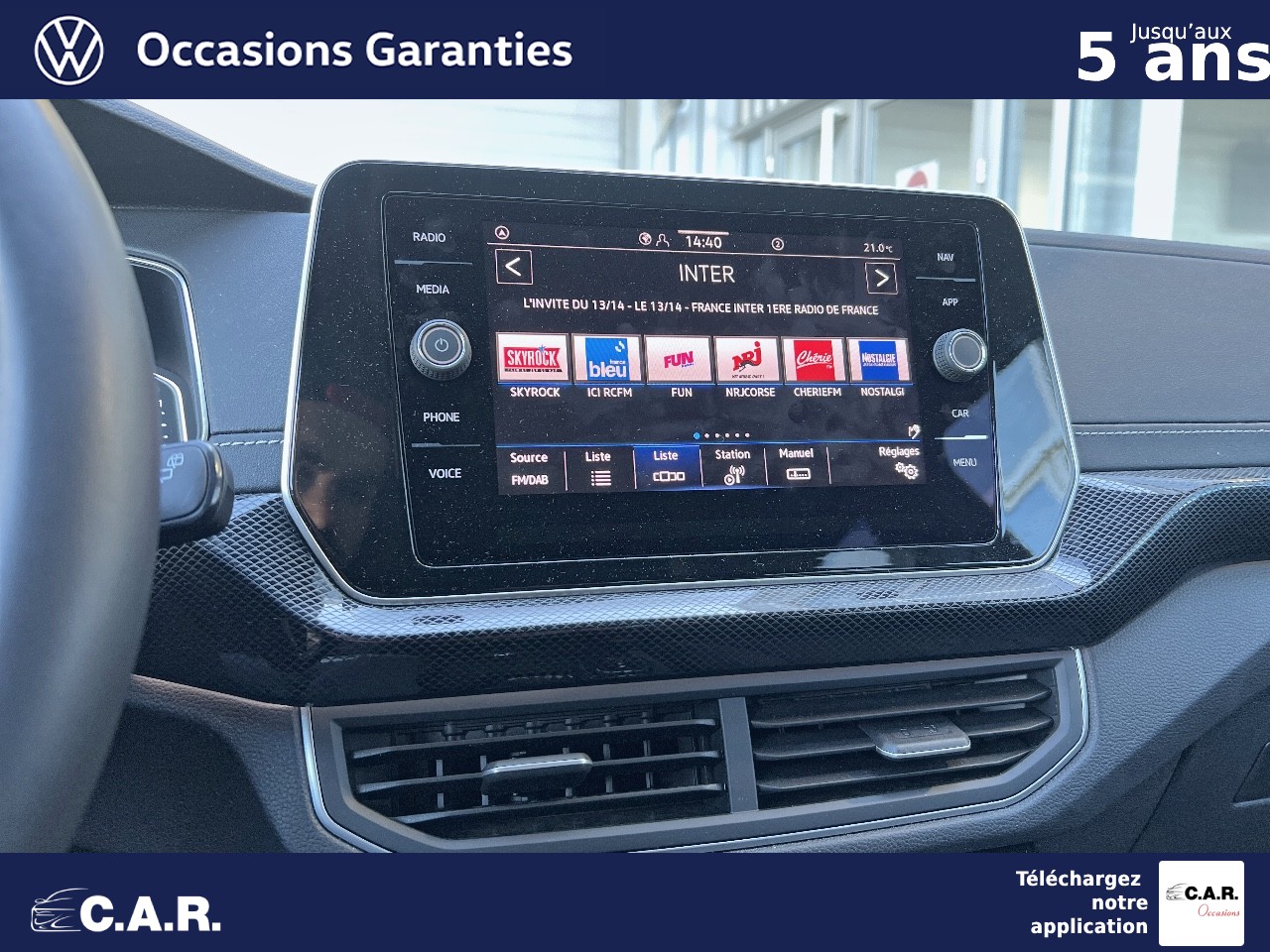 • Radionavigation 6 HP AV/AR (4x20W) avec: Système Navigation & Infotainment "Discover Media" avec Services de streaming et radio via Internet via carte eSIM intégrée Écran couleur tactile 8" haute résolution (800x480) Double tuner FM Affichage de la plage de lecture, du logo de la station à l'écoute Lecture des formats audio MP3 Port USB-C compatible Apple Affichage de la carte en 2D Affichage des logos des Points d'intéret, des limitations de vitesse, des zones de danger, etc. Interface Bluetooth avec fonction Audio Streaming A2DP Préparation pour "VW Connect" et "VW Connect Plus"