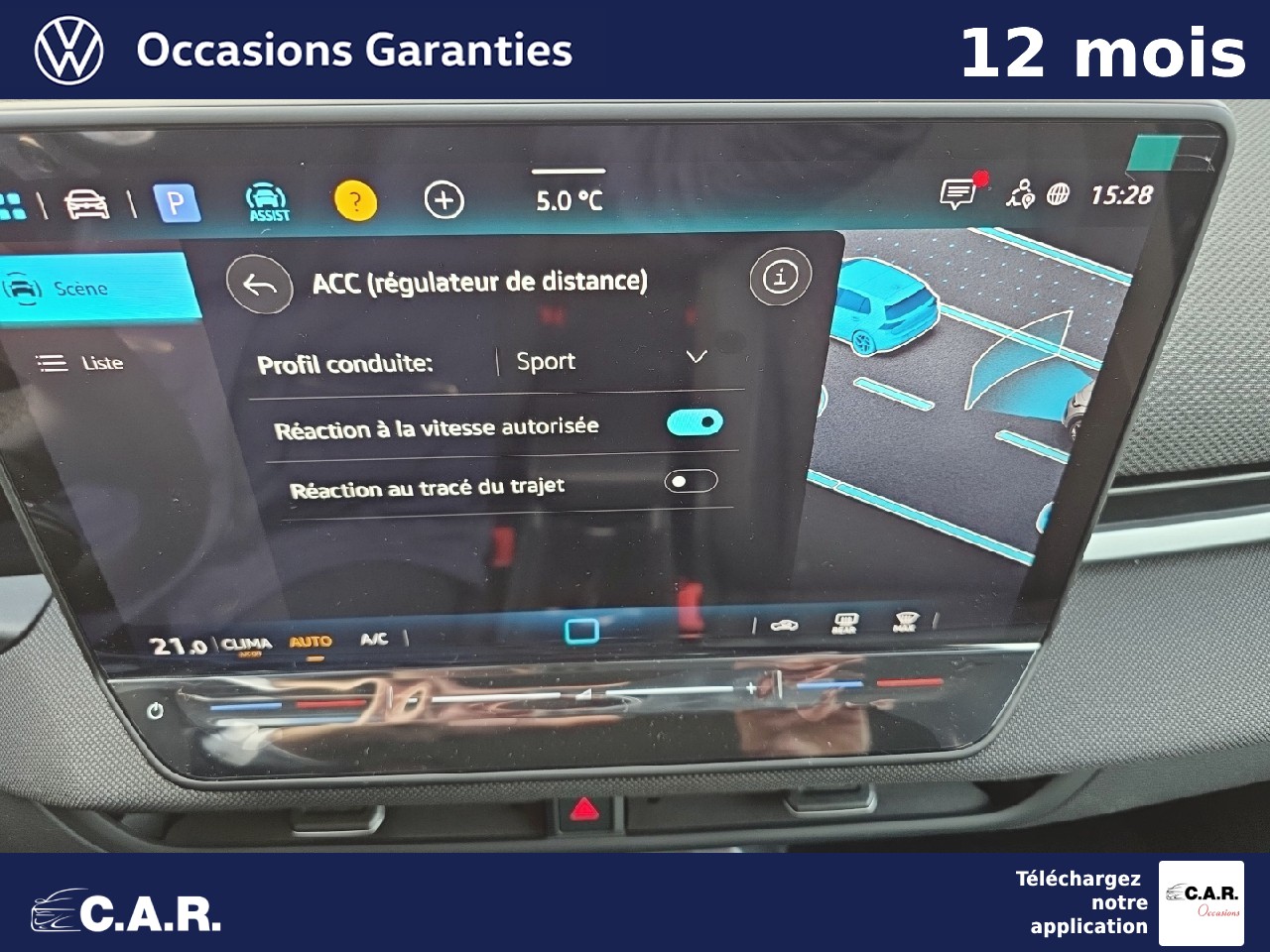 • ACC : Le Régulateur de vitesse adaptatif et prédictif avec limiteur de vitesse (ACC) adapte la vitesse en fonction des limitations de vitesse detectées et du parcours
