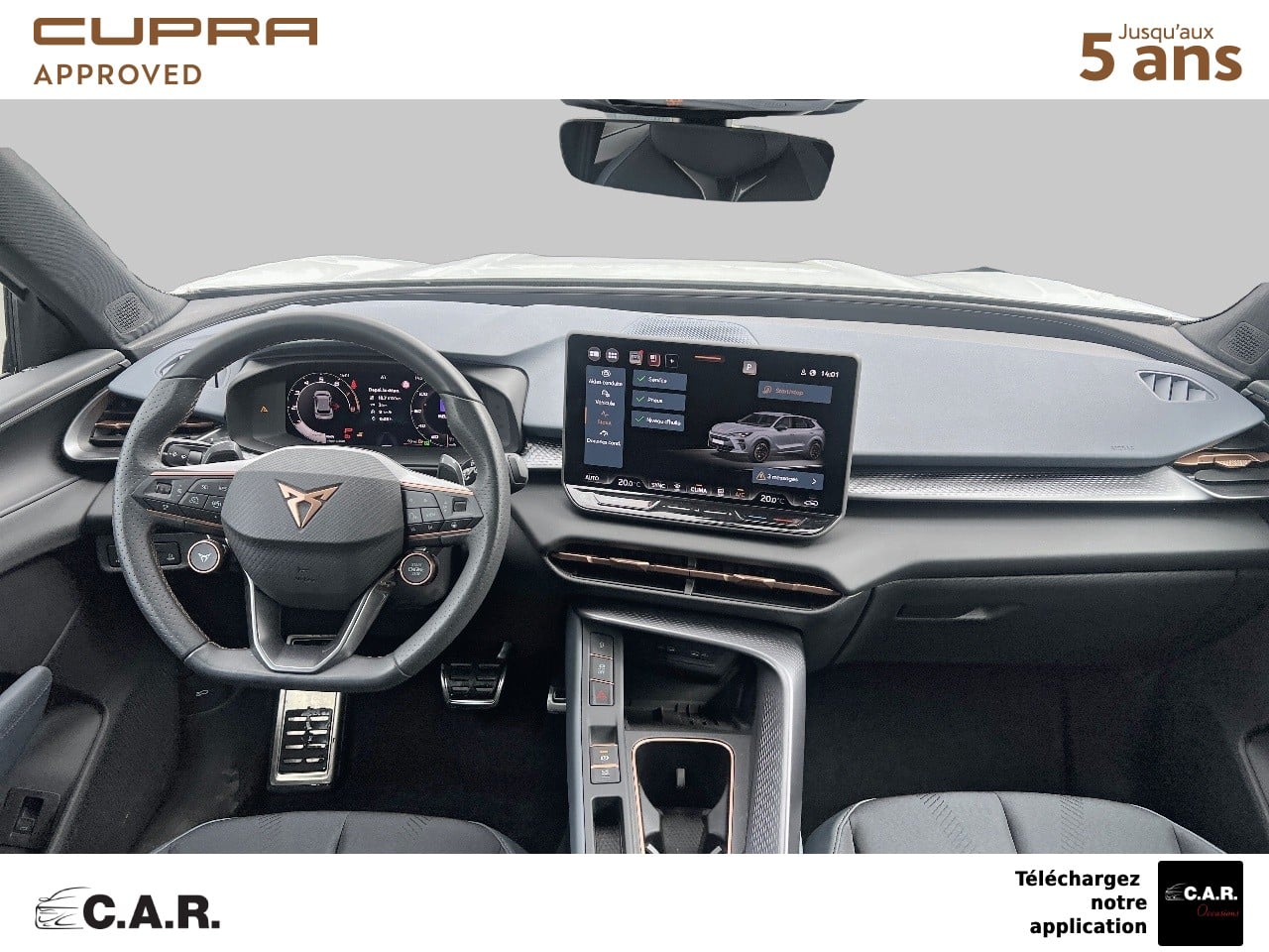 • Bandeau AR ''Infinite Light'' intégrant le logo CUPRA lumineux, avec signature lumineuse Tri-LED et cérémonie de bienvenue