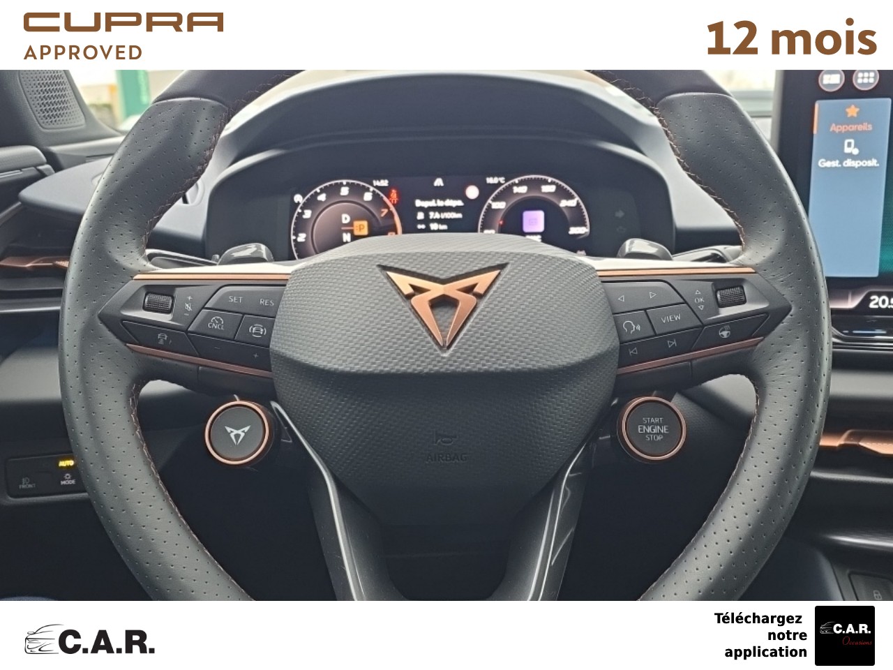 • Volant Supersports CUPRA en cuir avec boutons satellites, chauffant, avec palettes de changement de rapport