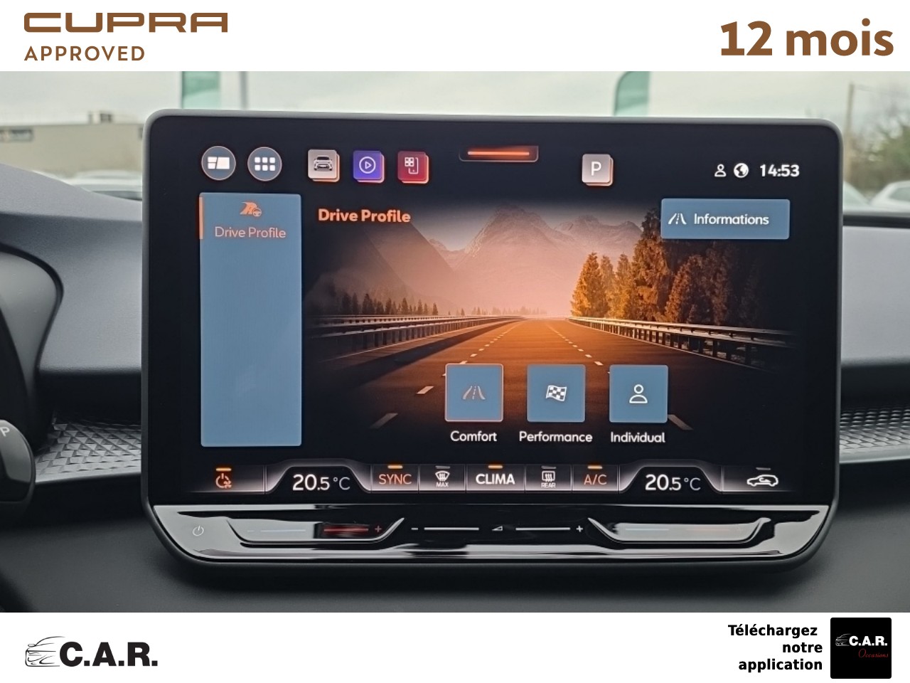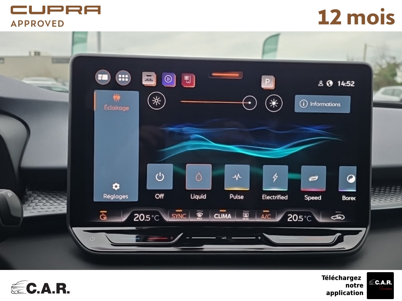 • Bandeau AR ''Infinite Light'' intégrant le logo CUPRA lumineux, avec signature lumineuse Tri-LED et cérémonie de bienvenue