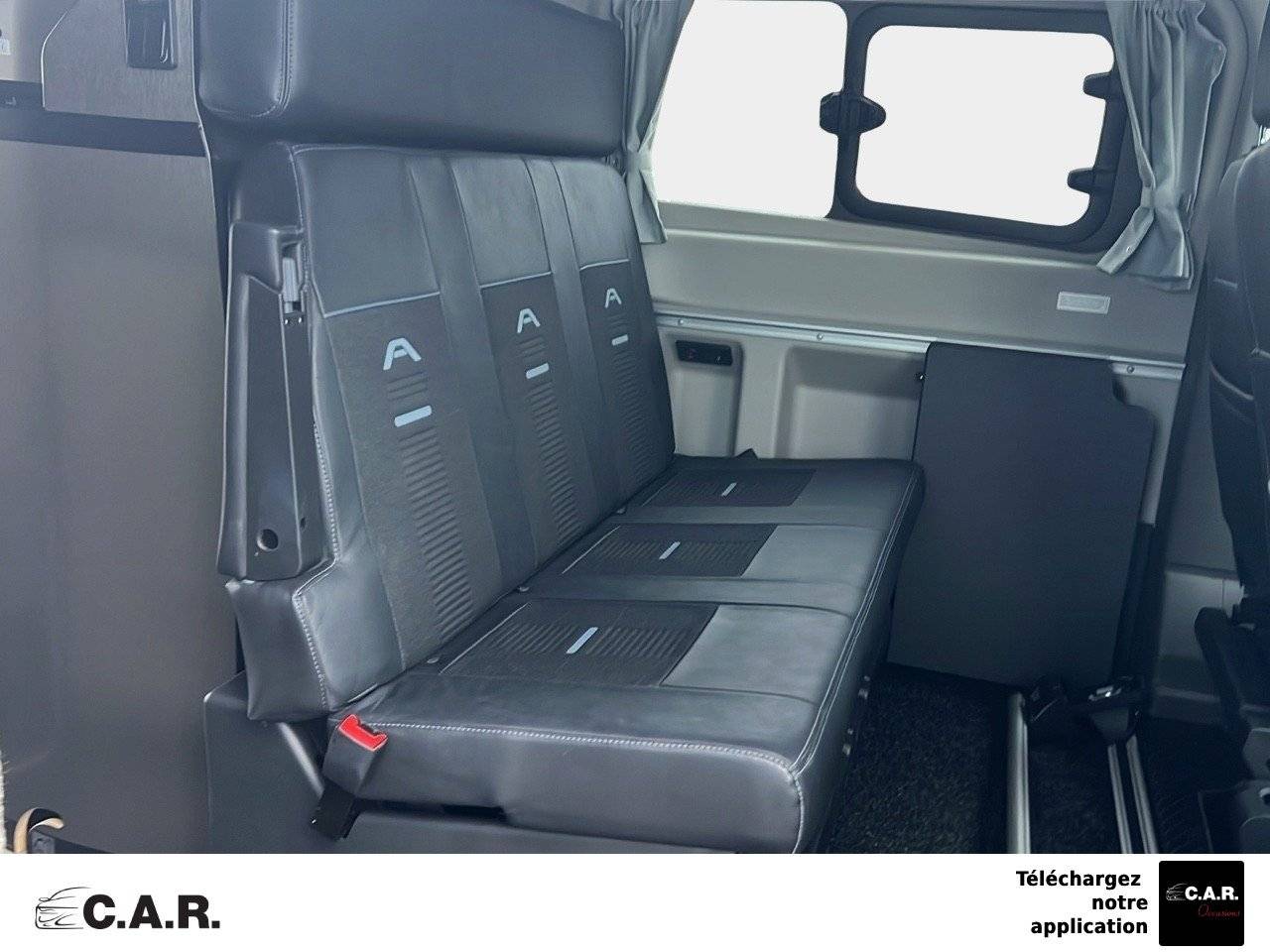 • Banquette 3 places avec ceintures de sécurité 3 points intégrées, transformable en plan de couchage de 1,91x1,30 m - Coffre de rangement sur la banquette et 2 supports ISOFIX sur les sièges extérieurs